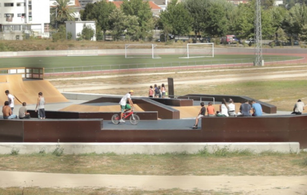 A zona desportiva inclui campo de jogos, percurso de manutenção, e um skate parque.