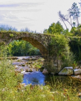 Edificada no século XIII ou XIV e reconstruída por João Rodrigues em 1613, a Ponte de Ázere apresenta-se com o tradicional tabuleiro horizontal sobre dois arcos de volta redonda e aparelho em silhares de granito, apresentando o arco Norte algumas siglas. O arco Sul possui aduelas mais curtas, sendo algumas almofadadas. O típico pegão central com talha-mar encontra-se, de igual modo, presente.