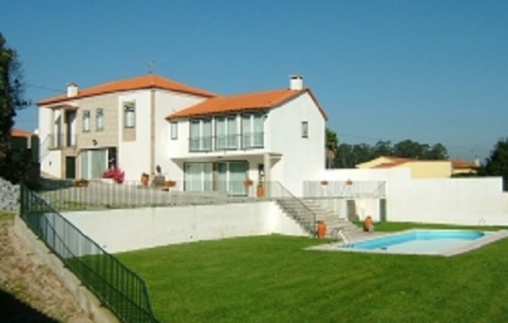 Casa em ambiente rural com 4 quartos com casa de banho privativa, 2 quartos, 2 casas de banho completas, sala de jantar, sala de estar com lareira, cozinha equipada, churrasqueira coberta, piscina 5x10, grande jardim com campo de futebol.